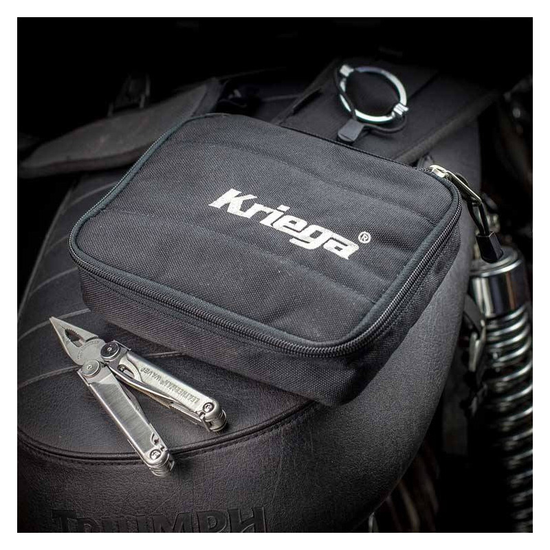 La bolsa para objetos personales Kriega Kube Organizer es ideal para guardar herramientas, cargadores de móvil, un GPS, etc...
