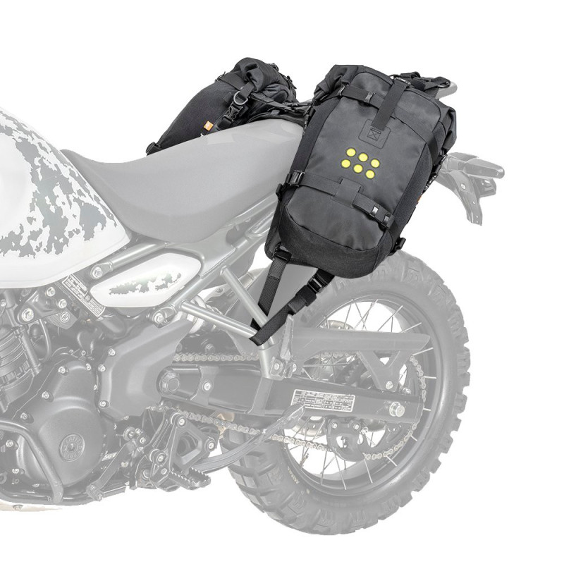 El soporte de equipaje de moto Kriega Overlander-S OS-Base Royal Enfield ha sido diseñado específicamente para el modelo HImalayan con soporte porta equipaje trasero. Una nueva forma a medida y correas de Kevlar con una longitud exacta para un ajuste perfecto en la moto sin necesidad de protección térmica para el escape. Un innovador sistema modular para alforjas que se adapta a prácticamente cualquier moto trail o enduro sin la necesidad de soportes para maletas metálicas. OS-BASE es un "arnés sobre el asiento" que permite que las bolsas OS-6, OS-12 u OS-18 puedan utilizarse como alforjas.