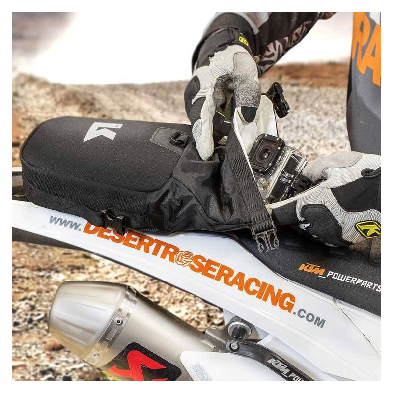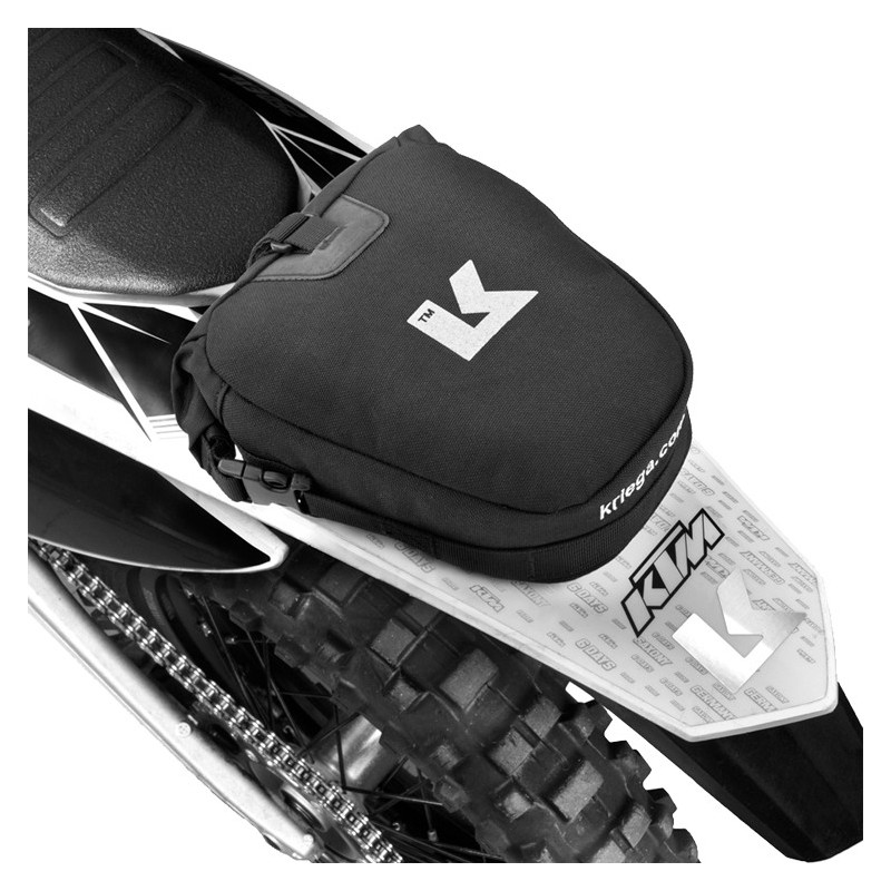 Kriega Rally Pack, una innovadora bolsa para el guardabarros trasero de motos de enduro. 100% impermeable y fabricado en Cordura 1000D. Capacidad de 2.5L ideal para transportar un botiquín, herramientas, guantes de recambio, etc. Base ultra resistente fabricada en Rhinotek con 4 remaches para el paso de los tornillos. Forro interior desmontable para limpieza o reemplazo.