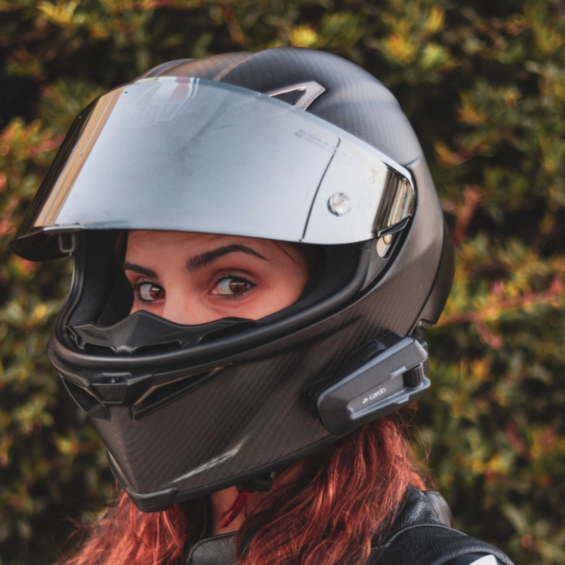 - Conectividad de 4 vías: 2 motociclistas y sus pasajeros con hasta 1.6Km de alcance entre cada moto en modo multi conferencia full dúplex