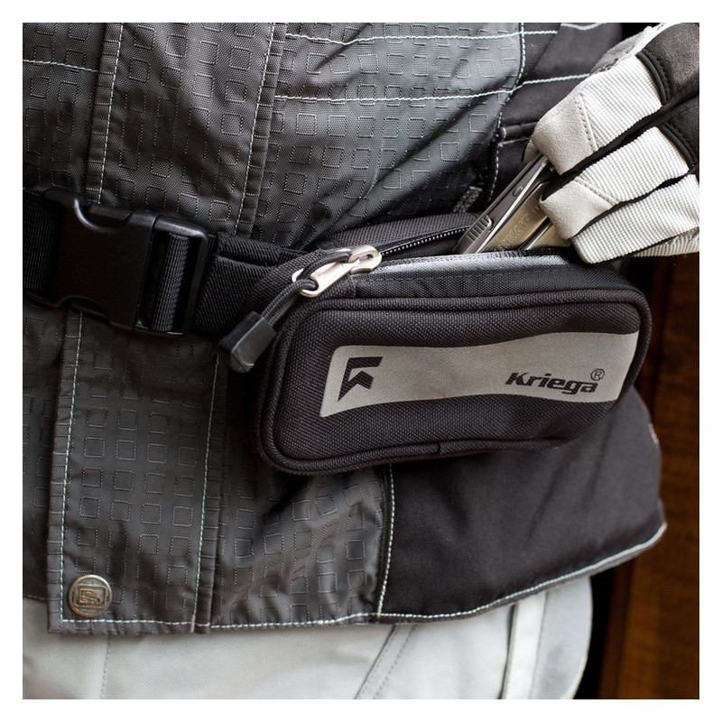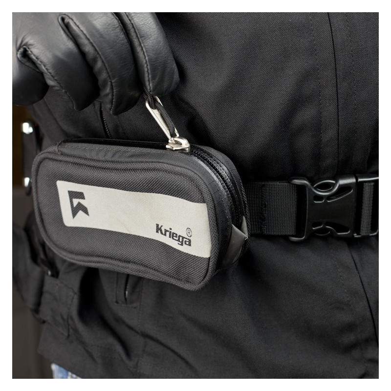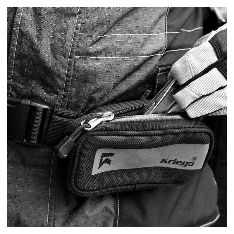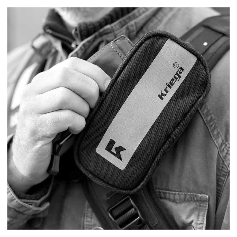 El bolsillo adicional para mochilas de moto Kriega Harness Pocket permite un acceso rápido a lo esencial en plena ruta... Bolsillo auxiliar ideal para un teléfono móvil, cámara pequeña, gafas de sol, llaves, etc. Simplemente se fija mediante cinchas de velcro en el tirante de la mochila, riñonera o la correa de las bolsas Kriega Messenger.