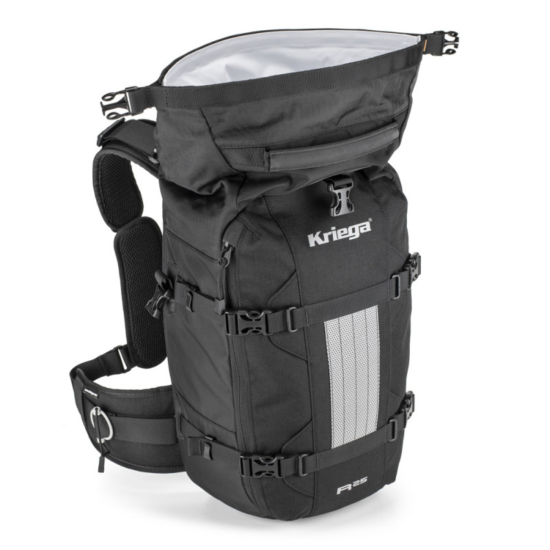 Desde su lanzamiento, la mochila de moto Kriega R25 BackPack ha sido muy popular entre los viajeros más exigentes para largos trayectos que viajan bajo cualquier condición climática. Con esta nueva versión de la R25, la mochila ha sido mejorada para que sea más útil en el día a día. Además de mantener el famoso sistema de ajuste en pecho Quadloc, ahora el compartimento principal de la mochila es 100% impermeable mediante cierre enrollable y forro interior desmontable.