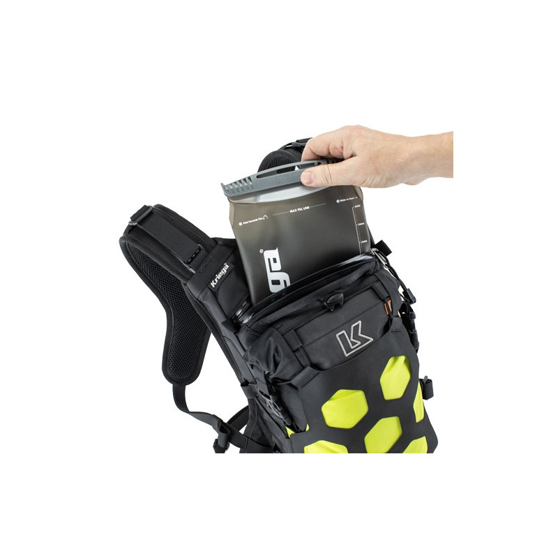 La mochila de moto Kriega Trail 9 Adventure BackPack es la mochila de aventura definitiva. Fabricada en Cordura y Hypalon de alta duración combinados con el arnés Quadloc-Lite. Dispone de un compartimento 100% impermeable con cierre enrollable de 4L de capacidad y un compartimento de hidratación por separado con cierre de cremallera y 5L de capacidad, compatible con los 3 tamaños de bolsas de hidratación que se pueden adquirir de forma opcional.