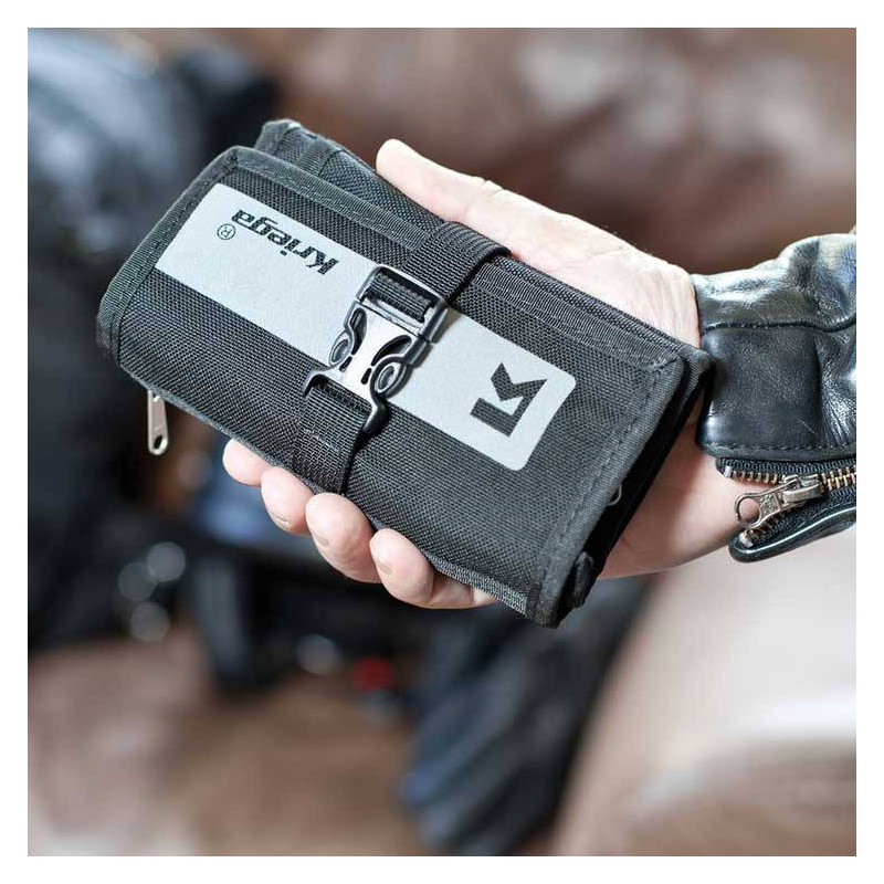 Cartera de motorista Kriega STASH WALLET en Cordura, la billetera perfecto y organizador de objetos de uso frecuente como llaves, tarjetas, billetes, bolígrafos, tapones para los oídos, etc...