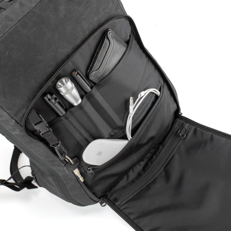 La mochila está compuesta de 3 secciones: un bolsillo impermeable para ordenador portátil de 15" con cierre enrollable, un compartimento plegable con cremallera de 4 litros de capacidad repleto de bolsillos organizadores y un espacioso compartimento principal con acceso con cremallera YKK® resistente ampliable de 22 a 30 litros, lo que lo hace ideal para llevar un casco integral por la ciudad o cargar con las compras semanales.