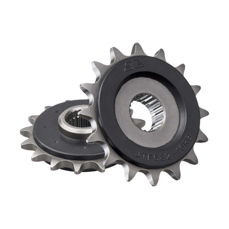 Los piñones JT Sprockets con goma de amortiguación ofrecen la misma calidad, diseño y tecnología probada por el OEM que utilizan los principales fabricantes japoneses de motocicletas desde principios de los años 90 para amortiguar el impacto de la cadena.