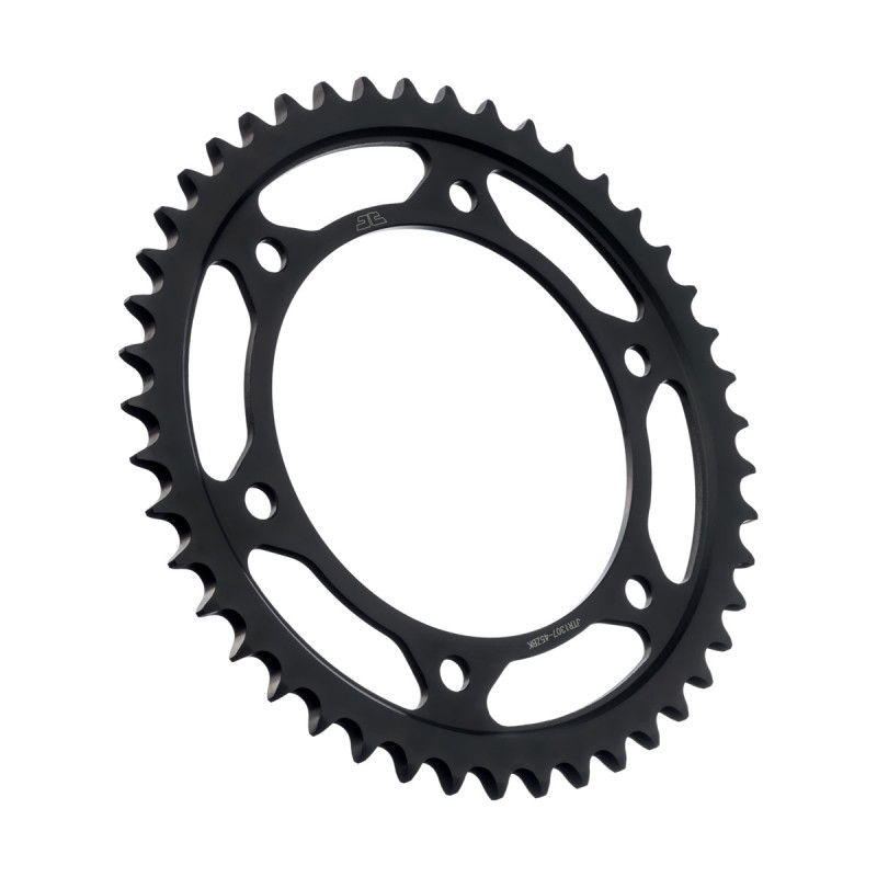 Los piñones y coronas de acero JT se fabrican utilizando acero de alto carbono C49 de la mejor calidad para las coronas y aleación de acero cromado SCM420 para los piñones. La gama de piñones y coronas JT cuenta con más de 2500 modelos para todas las motocicletas y vehículos todo terreno.