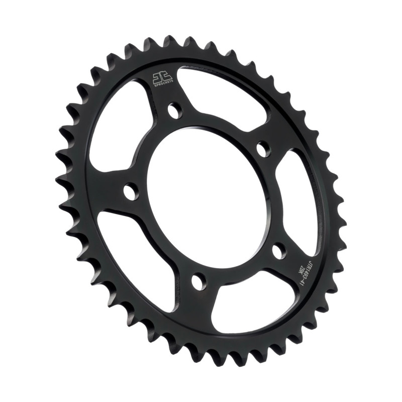 Los piñones y coronas de acero JT se fabrican utilizando acero de alto carbono C49 de la mejor calidad para las coronas y aleación de acero cromado SCM420 para los piñones. La gama de piñones y coronas JT cuenta con más de 2500 modelos para todas las motocicletas y vehículos todo terreno.