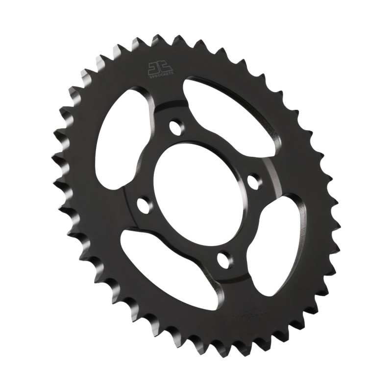 Los piñones y coronas de acero JT se fabrican utilizando acero de alto carbono C49 de la mejor calidad para las coronas y aleación de acero cromado SCM420 para los piñones. La gama de piñones y coronas JT cuenta con más de 2500 modelos para todas las motocicletas y vehículos todo terreno.
