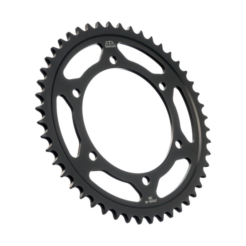 Los piñones y coronas de acero JT se fabrican utilizando acero de alto carbono C49 de la mejor calidad para las coronas y aleación de acero cromado SCM420 para los piñones. La gama de piñones y coronas JT cuenta con más de 2500 modelos para todas las motocicletas y vehículos todo terreno.