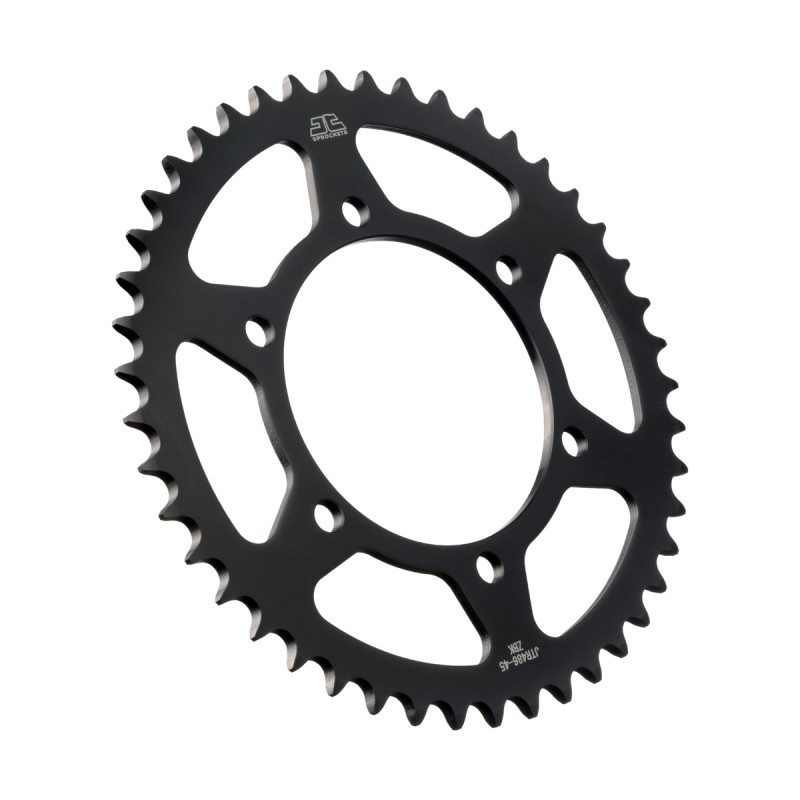 Los piñones y coronas de acero JT se fabrican utilizando acero de alto carbono C49 de la mejor calidad para las coronas y aleación de acero cromado SCM420 para los piñones. La gama de piñones y coronas JT cuenta con más de 2500 modelos para todas las motocicletas y vehículos todo terreno.