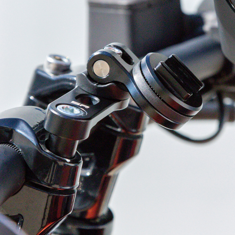 El soporte para smartphone para manillar de moto SP Connect Bar Clamp Mount Pro le permite fijar su SmartPhone en su motocicleta en cuestión de segundos. Además dispone de un cabezal giratorio e inclinable para que su smartphone quede en una posición perfecta.