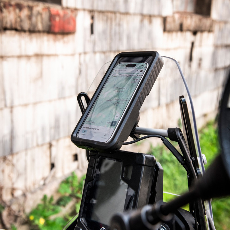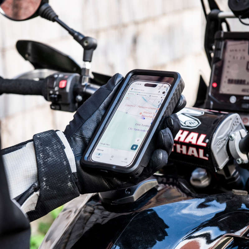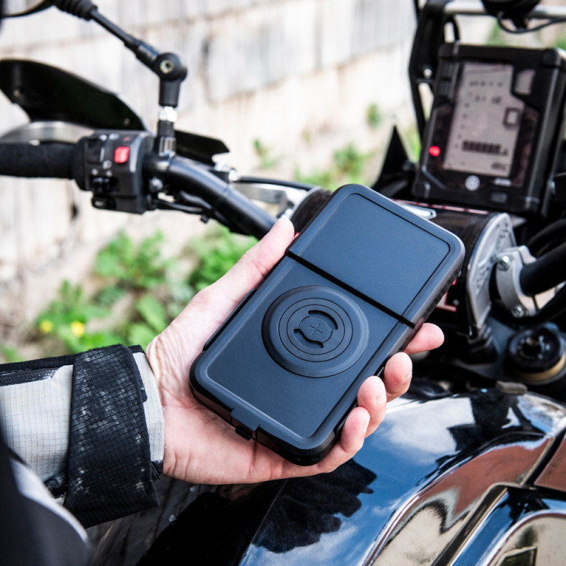 Atención: Si utiliza un smartphone con un estabilizador de imagen mecánico, recomendamos el uso de nuestro módulo reductor de vibraciones adicional, el Anti Vibration Module SPC+, para evitar de la mejor manera los posibles daños en el estabilizador de la cámara del teléfono causado por las vibraciones del motor de la moto. Si sigue teniendo problemas, no utilice el producto en combinación con este smartphone y póngase en contacto con el fabricante de su smartphone si no está seguro.